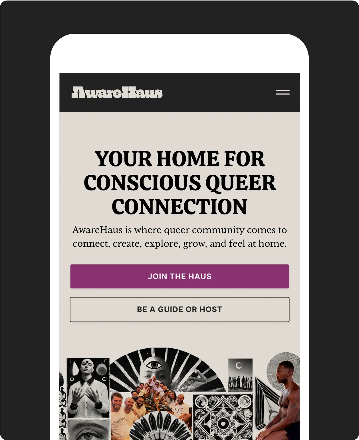 Each group’s needs and pathways were defined, then unified under a single, cohesive concept: the haus, a modern reimagining of chosen family and a nod to 1980s ball culture. By refining both the messaging and voice, we positioned AwareHaus as a welcoming, collective-led platform.